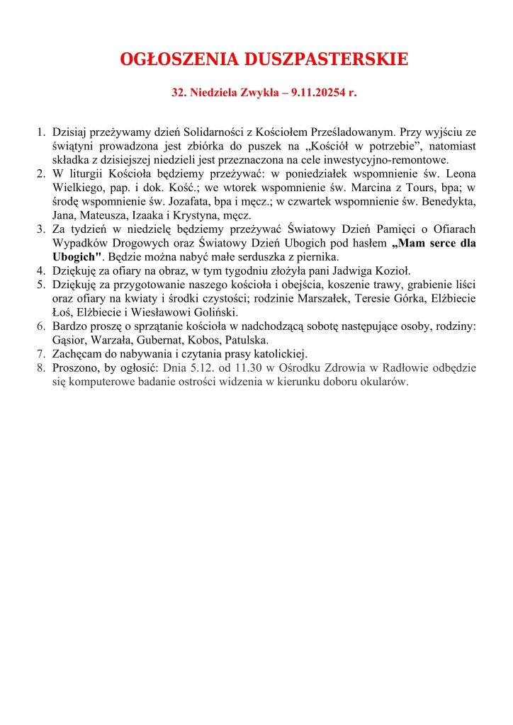 32. Niedziela zwykła – 09.11.2025 r.